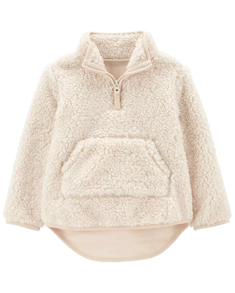 Blusa de sherpa bebê gola alta e bolso bege | Carter’s