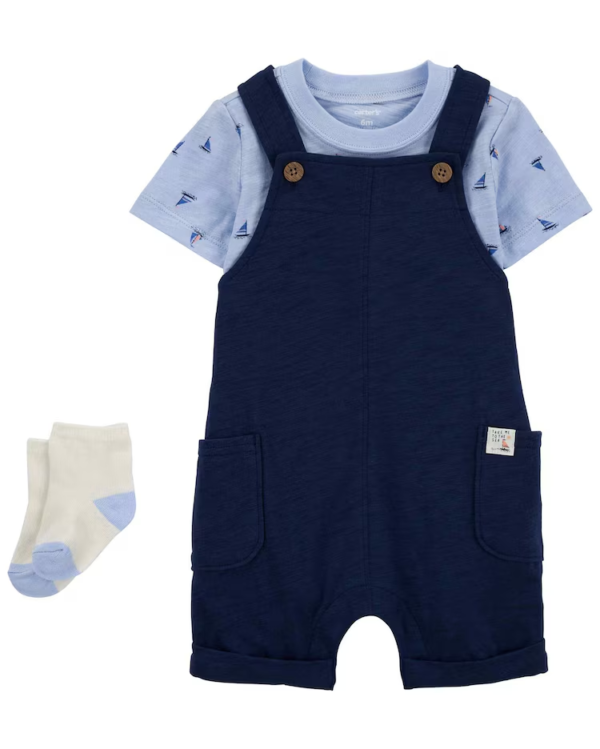 Jardineira bebê + par de meia barco à vela azul | Carter’s