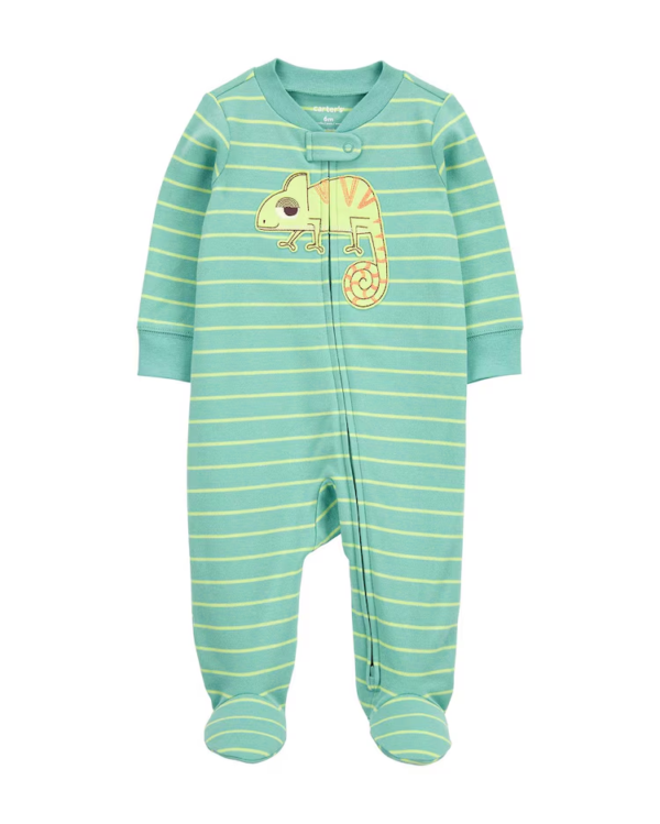 Super fofinho e confortável, o Macacão bebê camaleão verde | Carter’s será a pedida certa para o seu príncipe. Feito de algodão, o macacão conta com fechamento por zíper inverso, possui martingale para garantir proteção e seu grande destaque está em sua estampa listrada e patch de camaleão. Seja descansando ou se divertindo com os papais, a peça é certeira para esses momentos tão lindos e únicos!